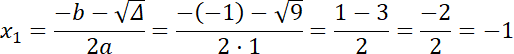 ∆ = b2 – 4ac = (–1)2 – 4 · 1 · (–2) = 9