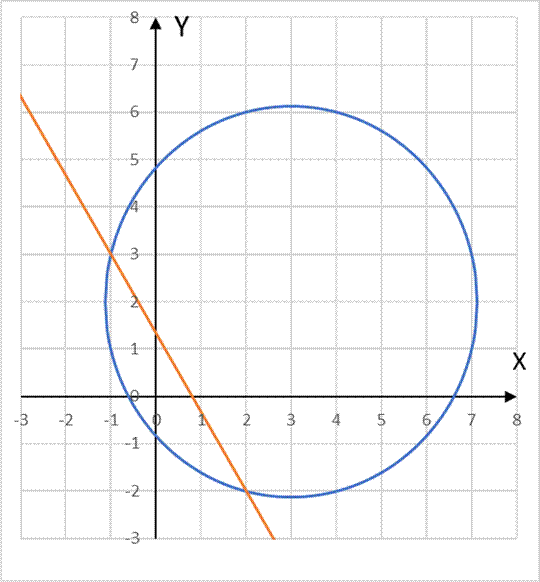 Układy te mogą mieć jedno rozwiązanie, dwa rozwiązania lub brak rozwiązań. W przypadku jednego rozwiązania okrąg i prosta mają jeden punkt wspólny i współrzędne tego punktu są rozwiązaniem układu. W przypadku dwóch rozwiązania okrąg i prosta mają dwa punkty wspólne i współrzędne tego punktu są rozwiązaniem układu. W przypadku braku rozwiązań prosta i okrąg nie przecinają się i nie mają punktów wspólnych.