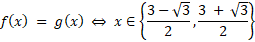 Argumenty, dla których obie funkcje przyjmują jednakowe wartości wyznaczamy poprzez przyrównanie ich
