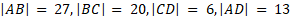 |FB| = |AB| - |AE| - |EF| = 27 – 6 – x = 21 – x