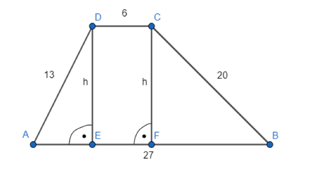 i przyrównaj do siebie otrzymane wartości, aby obliczyć x. Kolejno oblicz h i pole trapezu.
