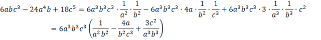 W tym zadaniu musisz zamienić każdy wyraz wyrażenia na iloczyn, w którym jednym z czynników jest 6a3b3c3, a następnie wyłączyć ten czynnik przed nawias.