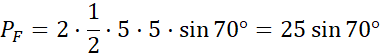 Zauważ, że zacieniowana figura składa się z 2 trójkątów równoramiennych o ramionach długości 5 i kącie pomiędzy ramionami β = 180˚ - 35˚ - 35˚ = 110˚