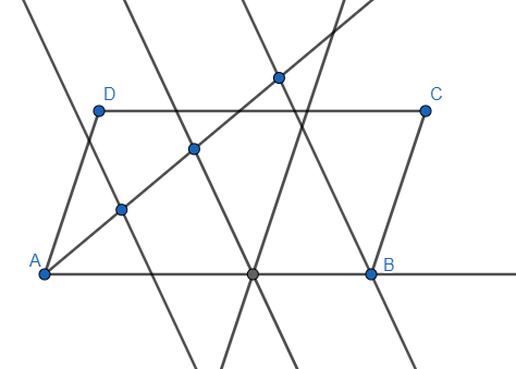 Zacznij od narysowania równoległoboku. Następnie poprowadź półprostą zaczepioną w punkcie A, która jest nachylona do prostej AB pod kątem różnym niż