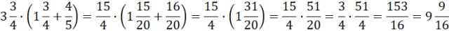 Pamiętaj o kolejności wykonywania działań: pierwszeństwo mają działania w nawiasie, po nich należy wykonać mnożenie, a na końcu – dodawanie. Sprowadź składniki do wspólnego mianownika i dodaj do siebie liczby z liczników, a następnie zapisz wynik w postaci ułamka niewłaściwego. Także pierwszy czynnik zamień na ułamek niewłaściwy i mnóż licznik z licznikiem i mianownik z mianownikiem. Skracaj czynniki. Na koniec wyłącz całości i zapisz ułamek w formie nieskracalnej.