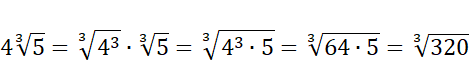 Zauważ, że zachodzi: , a więc, aby zapisać daną liczbę pod jednym pierwiastkiem, musisz podnieść do trzeciej potęgi liczbę, która stoi przed nim i otrzymaną wartość zapisać pod pierwiastkiem. Następnie skorzystaj z tego, że .