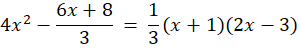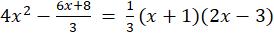 Dla ułatwienia (pozbycia się ułamków) przemnóż obie strony równania przez 3. Wymnóż nawiasy i maksymalnie uprość równanie. Następnie wykorzystaj wzór na deltę