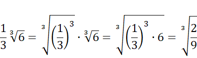 Zauważ, że zachodzi: , a więc, aby zapisać daną liczbę pod jednym pierwiastkiem, musisz podnieść do trzeciej potęgi liczbę, która stoi przed nim i otrzymaną wartość zapisać pod pierwiastkiem. Następnie skorzystaj z tego, że .