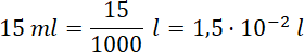 W tym zadaniu musisz zamienić 15 mililitrów na litry i wynik zapisać w notacji wykładniczej.
