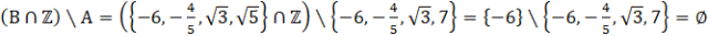 W tym zadaniu musisz znaleźć elementy należące naraz do zbioru B i do zbioru liczb całkowitych, a następnie odrzucić elementy, które należą do zbioru A.
