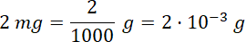 W tym zadaniu musisz zamienić 2 miligramy na gramy i wynik zapisać w notacji wykładniczej.