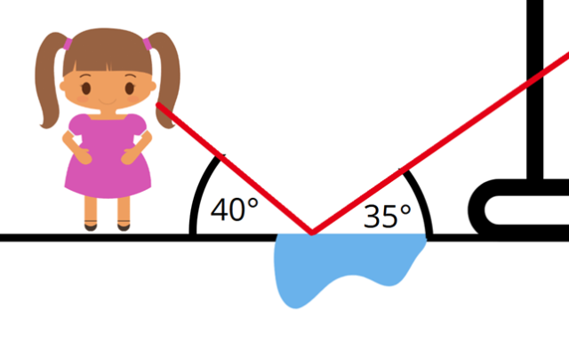 W tym zadaniu zmierz kąt jaki utworzyły promienie odbite w kałuży z podłożem.
