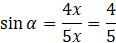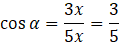 Cosinus kąta α, to stosunek długości przyprostokątnej przy kącie α do przeciwprostokątnej.