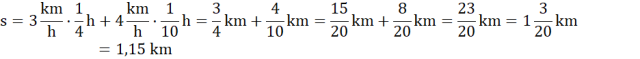 Na początek zapisz podane czasy jako ułamki godziny. Pamiętaj: godzina liczy 60 minut. Następnie zapisz wzór na drogę. Wstaw odpowiednie wartości i dodaj do siebie te dwa odcinki. Wykonaj mnożenie, rozszerz ułamki i dodaj je do siebie.