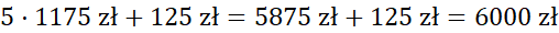 Za niewiadomą przyjmij np. cenę monitora, klawiatura kosztuje wtedy x – 1050. Dodaj do siebie koszt zakupu 5 monitorów i klawiatury, wynik to 6000. Odejmij od ceny zakupu liczbę 1050, a wynik podziel przez 6 – otrzymasz koszt zakupu monitora. Dodaj to niego 1050 – jest to cena klawiatury. Na koniec dodaj do siebie cenę monitora pomnożoną przez ich ilość i cenę klawiatury. Porównaj wyniki.