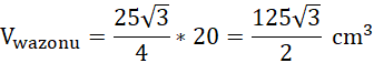 Podobnie postępujesz w przypadku obliczania pola i objętości wazonu. Aby obliczyć pole trójkąta równobocznego, musisz skorzystać ze wzoru na pole
