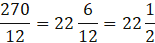Godzina lekcyjna trwa 45 minut. Wskazówka minutowa w ciągu jednej minuty obraca się o 6°, więc w ciągu 45 minut obróci się 270°. Wskazówka minutowa wykonuje pełny obrót co godzinę, a wskazówka godzinowa – co dwanaście godzin. To znaczy, że wskazówka godzinowa obraca się 12 razy wolniej od wskazówki minutowej, czyli w tym samym czasie obróci się o 12 razy mniejszy kąt. Aby obliczyć, o jaki kąt obróci się wskazówka godzinowa w ciągu 45 minut, zapisz ułamek o liczniku równym 270 i mianowniku równym 12, a następnie wyłącz całości.