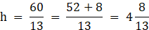 Jak wiesz, pole trójkąta obliczamy przez iloczyn boku i wysokości na niego padającej podzielony przez 2. Możemy oblicz pole trójkąta np. na dwa sposoby i zawsze będzie ono równe. Wysokością padającą na bok 12 cm jest 5 cm, ponieważ przyprostokątne są do siebie prostopadłe. Wysokość padającą na bok 13 cm oznaczmy przez h i obliczmy jej wartość.