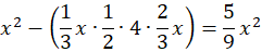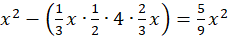 Możesz opisać, że wszystkie boki składają się z 3 równej długości odcinków, a zatem każdy z nich ma długość , w tym x to długość boku. Zatem pole kwadratu ABCD wynosi . Pole mniejszego kwadradu jest równe różnicy pola większego i sumy 4 trójkątów, które do niego nie należą . Oblicz stosunek pól: