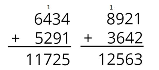 (bo: 6434 + 5291 = 11 725; 8921 + 3642 = 12 563)