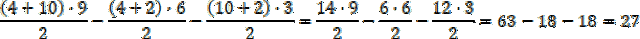 Uzupełnij informacje na rysunku. Oblicz pole dużego trapezu oraz dwóch mniejszych. Od dużego trapezu odejmij dwa mniejsze i pozostały wynik podziel na dwa.