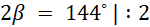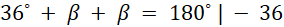 Kąty α i β są przyległe, więc α + β = 180˚, podstaw wyliczoną wyżej wartość α: