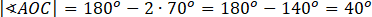 Zauważ, że trójkąt AOC ma dwa ramiona równe długości promienia okręgu, więc jest równoramienny. Na tej podstawie możesz obliczyć miarę kąta pomiędzy ramionami, pamiętając o tym, że kąty przy podstawie mają równe miary.