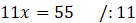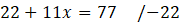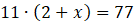 Zapisz wzór na pole prostokąta ABCD, które jest równe 77, a jego boki mają długość 11 i (2+x).