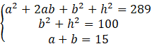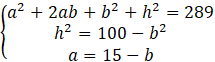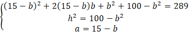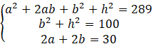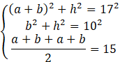Rozwiąż układ równań z trzema równaniami, w których jest zawarta zależność między odcinkami a, b i h. Rozwiąż ten układ równań i podaj długości podstaw tego trapezu.