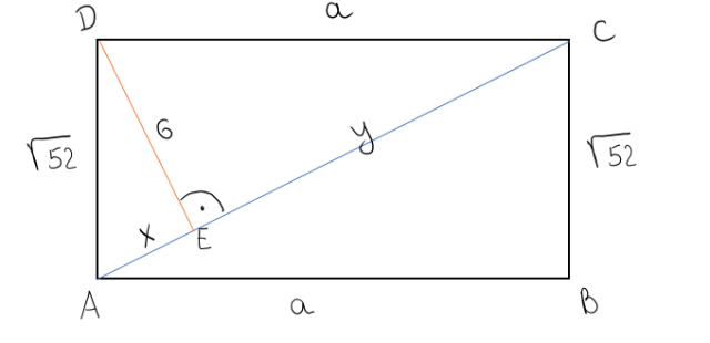 Wyznacz długość odcinka x, stosując twierdzenie Pitagorasa. Następnie rozwiąż układ równań z dwoma równaniami, które opisują długościami odcinków a i y. Podaj długość boku AB.