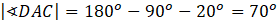 Oblicz miarę kąta DAC. Skorzystaj z tego, że miara kątów w trójkącie wynosi