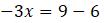 Napisz równanie, którego wynik odpowie na pytanie o jakiej liczbie pomyślał Adam, jeśli pomnożył tą liczbę przez –3 i do wyniku dodał 6 i otrzymał 9.