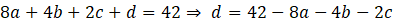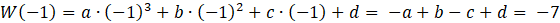 W kolejnym kroku oblicz wartość wielomianu dla -1 i również przyrównaj ją do wartości z treści. Podstaw za d wyrażenie wyznaczone z pierwszego równania.