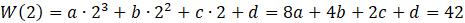 Aby rozwiązać zadanie, wyznacz wartość wielomianu dla 2 i przyrównaj otrzymane wyrażenie do wartości podanej w treści. Następnie z otrzymanego równania wyznacz wartość współczynnika d.