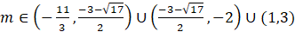 Zauważ, że aby równanie w drugim nawiasie miało dwa miejsca zerowe, to delta musi być większa od zera. Wyznacz ją.