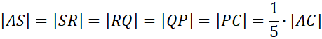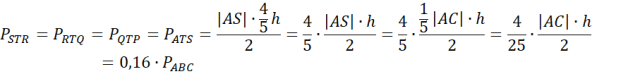 W tym zadaniu musisz wykazać, że pole każdego z trójkątów ATS, STR, RTQ, QTP stanowi 0,16 pola trójkąta ABC.