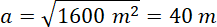 Ogród w kształcie kwadratu o polu powierzchni 16 a jednym bokiem przylega do budynku. Oblicz długość boku działki: