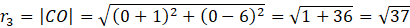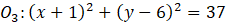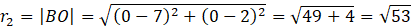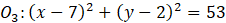 , gdzie a i b są współrzędnymi środka okręgu, a r – jego promieniem. W tym przypadku promienie są równe odległości punktów A, B i C od początku układu współrzędnych.