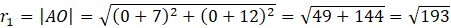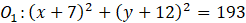 Podaj równania opisujące okręgi przechodzące przez punkt (0, 0), których środki to wierzchołki trójkąta ABC, gdzie A(-7, -12), B(7, 2), C(-1, 6).