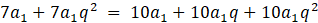 Najpierw zapisz treść z zadania w formie równania. Następnie, za wyrazy ciągu podstaw ilorazy wyrazu pierwszego i q. Całość uprość a otrzymasz wartość q.