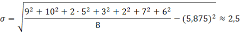 obliczamy jako sumę elementów zestawu podzieloną przez ich ilość. Odchylenie standardowe wyznaczamy ze wzoru