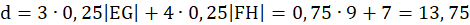 Na podstawie rysunku zauważ, że łamana składa się z 3 odcinków o długości 0, 25|EG oraz z 4 odcinków o długości 0, 25|FH| na tej podstawie oblicz długość łamanej.
