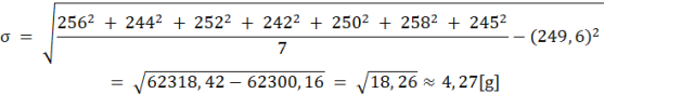 W tym zadaniu musisz ustalić, jaki napis powinien znaleźć się na opakowaniu herbatników, wiedząc, że powinien on zawierać dane dotyczące odchylenia standardowego. Oblicz je na podstawie podanych próbek.