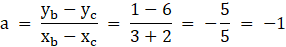 Prosta AE jest prostopadła do prostej BC, więc jej współczynnik a = 1.