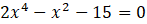 W tym zadaniu musisz obliczyć jaki jest wynik przemnożenia wszystkich rozwiązań równania 2x4 – x2 – 15 = 0.