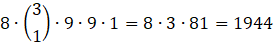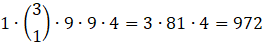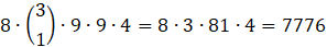 c) Na drugim, trzecim lub czwartym miejscu: wtedy na pierwszym miejscu może stać każda z cyfr 1 – 9 (bez 2): 8 możliwości, na jednym z trzech środkowych musi stać 2: 1 możliwość, na pozostałych dwóch środowych może stać każda z cyfr 0 – 9 (bez 2): 9 możliwości, a na ostatnim miejscu musi stać cyfra parzysta różna od 2: 4 możliwości. Zapisz działanie przedstawiające powyższy opis i je oblicz.