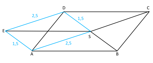 Jeśli długość przekątnych równoległoboku ABCD wynosi 5 i 3, to jaki obwód ma równoległobok ASDE?