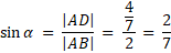 W tym zadaniu trzeba obliczyć sinusy kątów, jakie wysokość opuszczona na przeciwprostokątną tworzy z przyprostokątnymi trójkąta prostokątnego. Długości przyprostokątnych w tym trójkącie wynoszą 2 i 3√5.