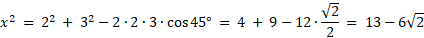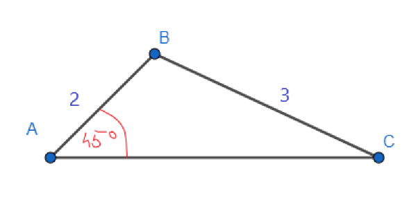 Dla trójkąta, w którym dwa boki mają długość 2 i 3, a jeden z kątów ma miarę 45°, określ możliwe długości trzeciego boku.