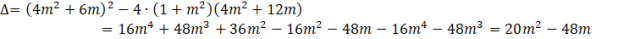 Prosta i okrąg przecinają się w dwóch miejscach, gdy powyższe równanie jest kwadratowe i ma dwa rozwiązania, więc współczynnik znajdujący się przy